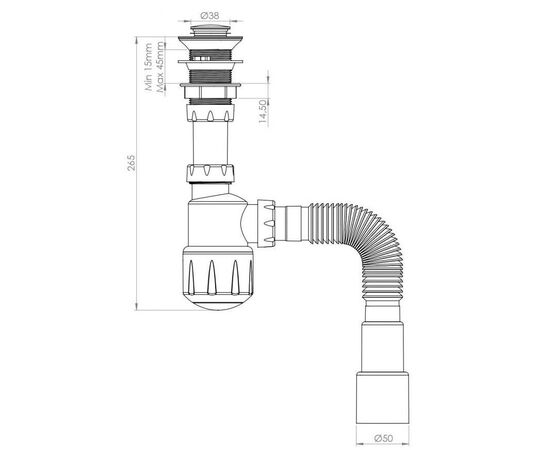 Выход в канализацию: гибкая труба 1 1/4" - 40/50 мм