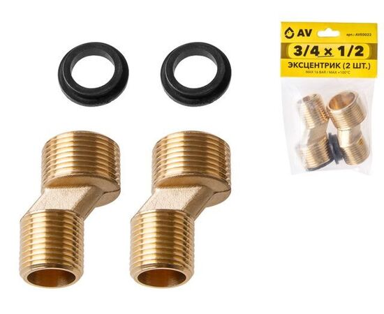 Эксцентрик 3/4" нар. х 1/2" нар. (2шт), AV Engineering (инд. упак.)