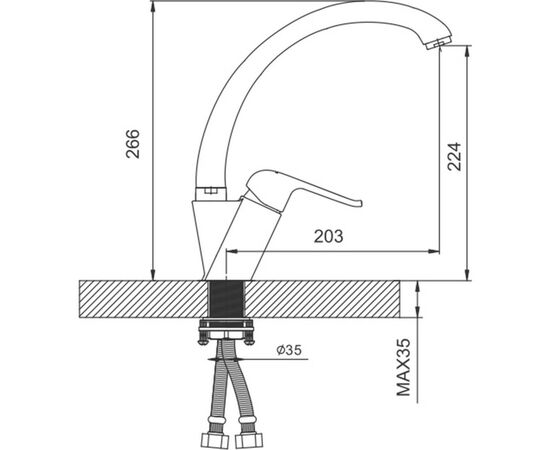 Смеситель для кухни 35к G4150 GAPPO высокий пов. излив, п/гайку, ЧЕРНЫЙ