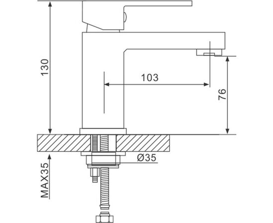- Длина излива: 103 мм