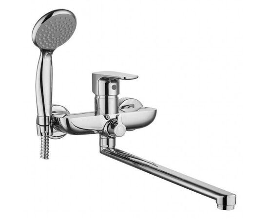 Смеситель для ванны длинный излив 322 мм в комплекте с лейкой и шлангом BASE, Россия