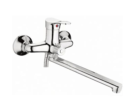 - В комплекте поставки: Смеситель для ванны. Душевой шланг. Душевая лейка. Держатель лейки. Комплект отражателей. Комплект эксцентриков. Комплект креплений.