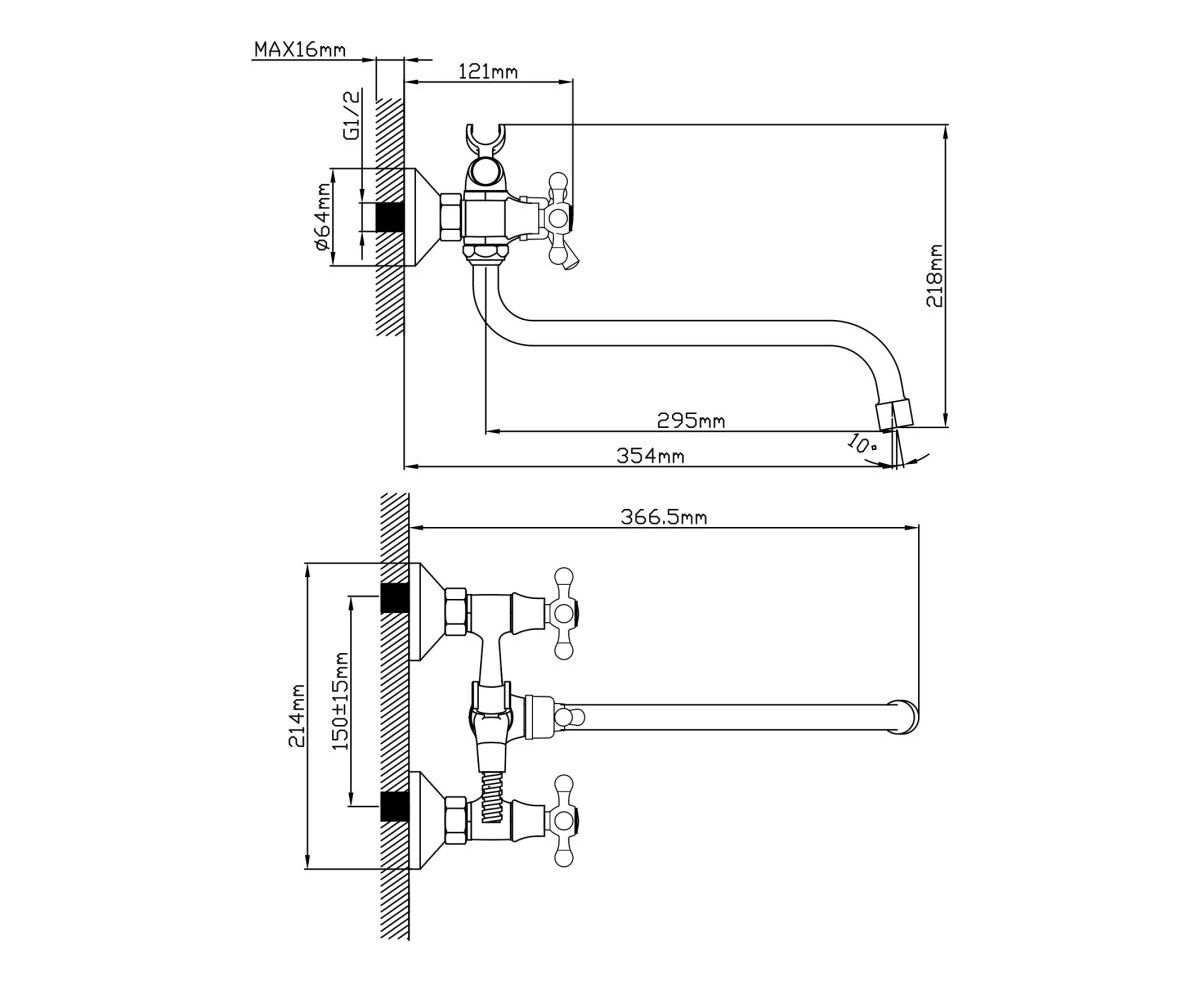 - Длина излива, мм: 295,