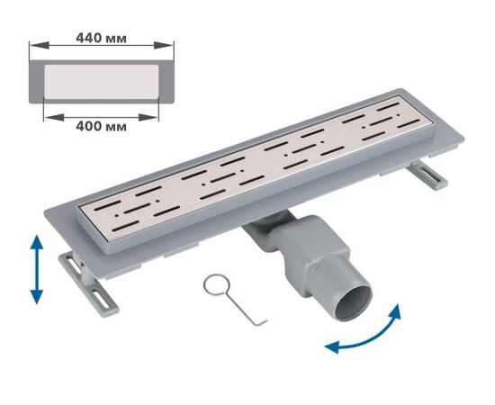 Сливной трап горизонтальный D 50, реш. нерж., сухой затвор, 65х400мм, AV Engineering