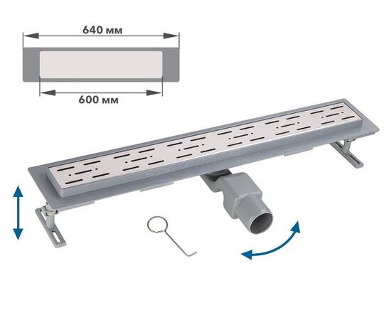 Сливной трап гориз. D 50, реш. нерж., сухой затвор, 65х600мм, AV Engineering