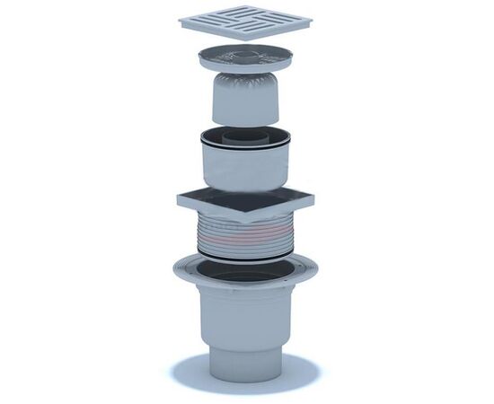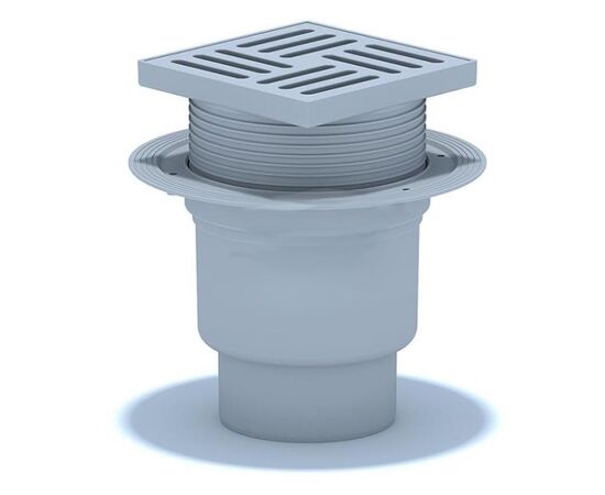 Трап вертикальный регулируемый D110 с гидрозатвором, решётка из пластика, 150х150мм, Ани Пласт TA1710 предназначен для отвода воды из душевой комнаты или кабины в канализацию. Решетка трапа из пластика. В трапе предусмотрен гидрозатвор, который препятствует проникновению неприятных запахов из канализации. Конструкция не пропускает в сливную канализацию загрязняющие частицы, предотвращает засоры и легко чистится. Рекомендуется при частом использовании, допустимая нагрузка до 300кг.
