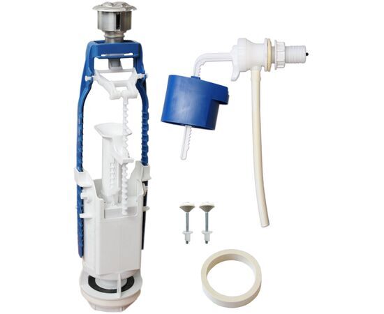 Арматура — основа любого унитаза. Предназначена для наполнения смывного бачка водой и для подачи её на слив в унитаз. Наполнительный клапан с пластиковым штуцером, выпускной клапан с хромированной ручкой, комплект крепежа, прокладка между бачком и унитазом, Боковая подводка.