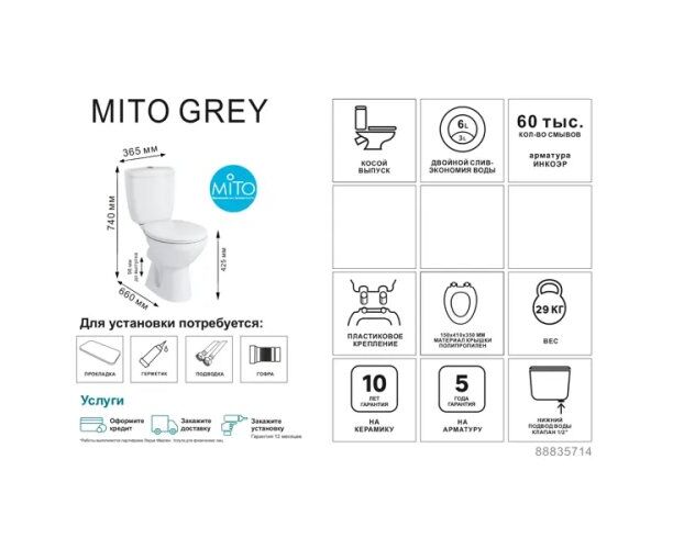 Унитаз-компакт CERSANIT MITO GREY 031 2-уровневая 3/6 РР