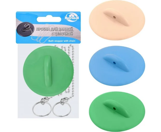 Пробка для ванной МУЛЬТИДОМ с цепочкой Колор МГ34-4 используется для перекрывания слива.