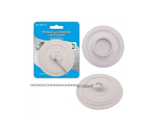 Изготовлено: пробка из резины, цепочка из стали с коррозионностойким покрытием. Подходит для сливного отверстия диаметром от 38 до 55 мм.