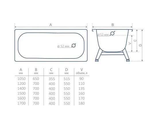Ванна стальная DONNA VANNA 1,7х0,7х0,4, цв. белый