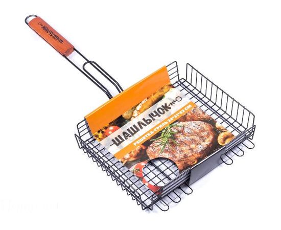 Такая конструкция решетки для барбекю позволяет зажимать продукты питания между двумя сетками, а затем запекать их при помощи гриля. Показателем качества решетки-гриль может служить то, что в сложенном состоянии ручки, а также сетка приспособления, с зажатой едой должны оказаться в одной плоскости.