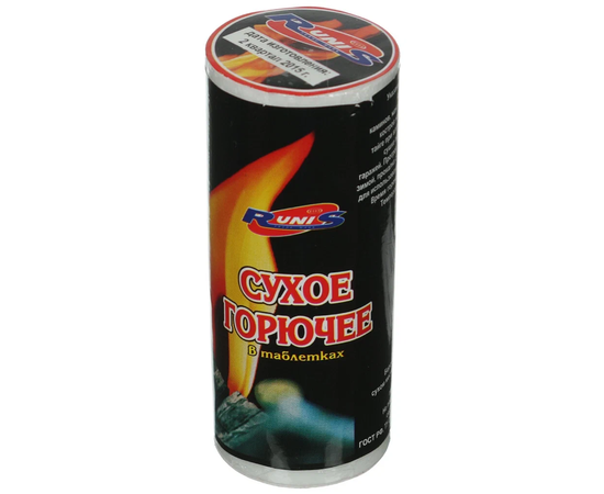 Сухое горючее является незаменимой вещью для путешественников, туристов, рыболовов и охотников. При помощи такого горючего можно быстро разогреть еду или зажечь костер. Сухое горючее незаменимо в условиях сильной влажности. Когда все вокруг мокрое и не поддается огню сухое горючее обязательно вас выручит! Сухое горючее Runis хорошо принимается и горит на протяжении 9-14 минут. Представленное сухое горючее имеет форму таблетки. В одной упаковке содержится 10 таблеток, вес одной таблетки 15 гр. Для розжига печей, каминов, мангалов, шашлычниц, костров на рыбалке, охоте, в тайге при влажном климате, при сушке погребов, подвалов, гаражей. Прогрев картера двигателя зимой, прокалка свечей автомобиля, для использования в лабораториях. Температура горения 900℃.