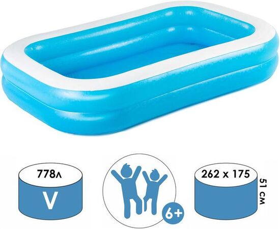 Бассейн надувной поливинилхлорид детский 262*175*51 см (арт. 54006)