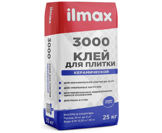 ilmax 3000 предназначен для приклеивания облицовочных материалов: цементной, бетонной,