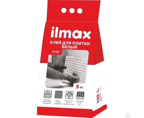 Плиточный клей ilmax 3140 предназначен для приклеивания: плитки из натурального и искусственного камня, в том числе мраморной; стеклянной плитки; мозаики; прозрачной, полупрозрачной, склонной к изменению цвета (прокрашиванию) плитки; керамической глазурованной и неглазурованной плитки, клинкерной плитки; плиток с водопоглощением менее 1%, в том числе, керамогранитных плиток (ГРЕС); АМК плитки.