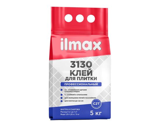 Плиточный клей ilmax 3130 предназначен для приклеивания: керамических (глазурованных и неглазурованных) плиток; плит из натурального камня (кроме мрамора); клинкерных плиток; бетонных плиток; кислотоупорных плиток; непрозрачной стеклянной мозаики и мозаики из натурального камня (кроме мрамора); плиток из искусственного камня; плиток с водопоглощением менее 1%, в том числе, керамогранитных плиток (ГРЕС).