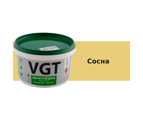 Шпатлевка VGT ЭКСТРА по дереву 0.3 кг (Россия) Тонкодисперсная шпатлевка для заделки сучков, трещин, иных деревянных поверхностей и проведения других ответственных работ. Может применяться в качестве финишной шпатлевки, в т.ч. в местах с повышенной влажностью или в периодическом соприкосновении с водой.