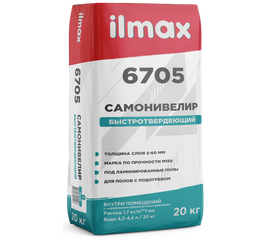 НАЗНАЧЕНИЕ: ilmax 6700 предназначен для финишного выравнивания минеральных оснований и создания поверхности под укладку ламинированных полов и паркетной доски через разделительный слой; ПВХпокрытий, пробковых полов и текстильных покрытий с использованием клеев на водной основе и...