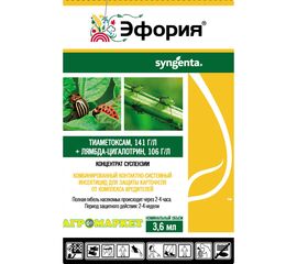 Действующее вещество: тиаметоксам, 141 г/л + лямбда-цигалотрин, 106 г/л Препаративная форма: концентрат суспензии. Описание: комбинированный контактно-системный инсектицид, предназначенный для защиты картофеля от комплекса вредителей. Скорость воздействия средства для защиты растений от...