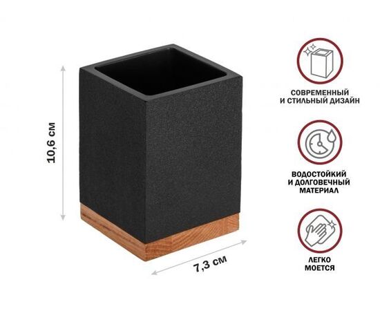 Стакан для зубных щеток WOOD BLISS, черный, PERFECTO LINEA