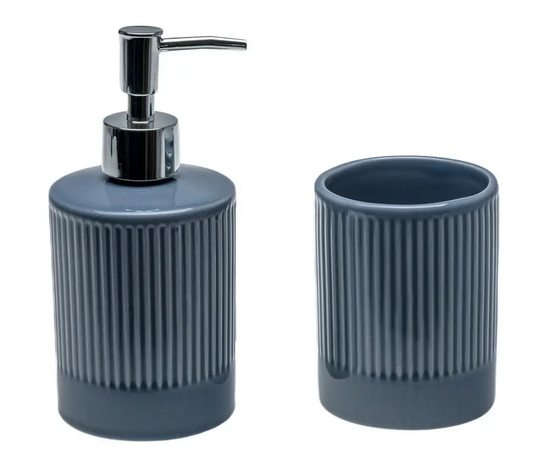 НАБОР ДЛЯ ВАННОЙ керамический "Лина" серый 2 пр.: дозатор для мыла 350 мл/7,9*17,1 см, стакан 7,8*10