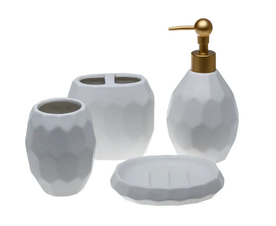 НАБОР ДЛЯ ВАННОЙ керамический "Олимп" 4 пр.: дозатор для мыла 500 мл, мыльница, подставка для зубных