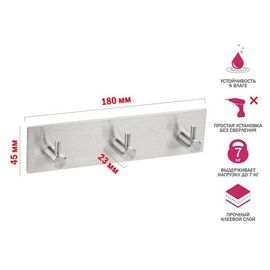 Планка самоклеящаяся 3 крючка PEGASUS, нержавеющая сталь, карт.уп., PERFECTO LINEA