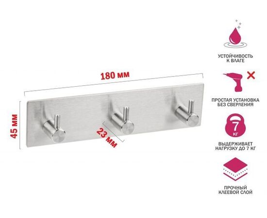 Планка самоклеящаяся 3 крючка PEGASUS, нержавеющая сталь, карт.уп., PERFECTO LINEA