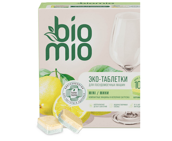BioMio Таблетки для посудомоечной машины Бергамот и юдзу, 10 г/100 шт.