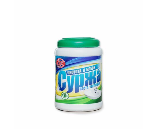 Паста чистящая «Суржа»предназначена для чистки, дезодорации и удаления устойчивых загрязнений, ржавых пятен с поверхности фаянсовых раковин, унитазов и кафельных плиток, эмалированных и фаянсовых поверхностей.