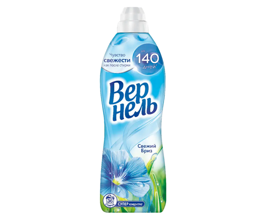 Концентрированный кондиционер для белья Вернель Свежий Бриз 910 мл, (36 стирок) подарит белью не только невероятную мягкость, но и легкий пробуждающий аромат. Преимущества кондиционера для белья Вернель: - Средство Вернель имеет концентрированную формулу, обеспечивающую мягкость и свежесть белью. - Благодаря специальным аромакапсулам в составе кондиционер для стирки Вернель позволит наслаждаться интенсивным ароматом белья до 140 дней. - Кондиционер для стирки облегчает глажку и обладает антистатическим эффектом. Кондиционер Вернель идеально подходит для регулярного ухода за бельем, благодаря эффективности и простоте использования. - На одну стирку достаточно меньше половины колпачка средства Вернель. - Благодаря удобной крышке-дозатору вы всегда будете знать, сколько ополаскивателя для белья необходимо добавить в отделение для кондиционера в стиральной машине или в воду во время последнего полоскания при ручной стирке.