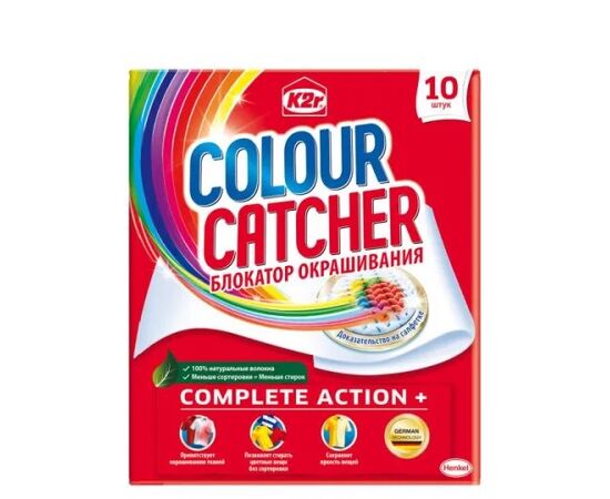 Одноразовые салфетки Colour Catcher препятствуют окрашиванию белья, позволяют стирать цветные вещи без сортировки, улавливают частицы загрязнений, придающих серый оттенок во время стирки. Салфетка, которая действует по принципу ловушки, притягивает свободные частицы красителей, предотвращает нежелательное окрашивание и линьку во время стирки цветных вещей, позволяя стирать без сортировки. Работает! Доказательство на салфетке Ловушки для цвета и грязи, которые сделаны из 100% натуральных волокон.
