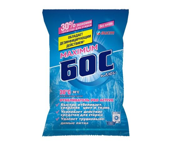 Усиленная формула средства «БОС» - плюс maximum с максимальным содержанием активного кислорода специально разработана для отбеливания без кипячения всех видов тканей, включая шерсть и шёлк, при низких температурах (30°С-50ºС).