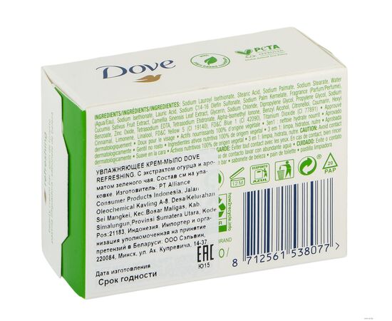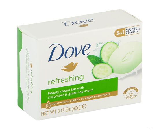 Крем-мыло бессульфатное Dove Прикосновение свежести может применяться ежедневно – для глубокого питания кожи и её ослепительной красоты! Увлажняющее твёрдое крем-мыло Dove Прикосновение свежести обладает тонизирующими свойствами и освежающим ароматом огурца и зеленого чая. В отличие от обычного кускового мыла, оно на ¼ состоит из увлажняющего крема – чтобы делать Вашу кожу нежной и ослепительно красивой!