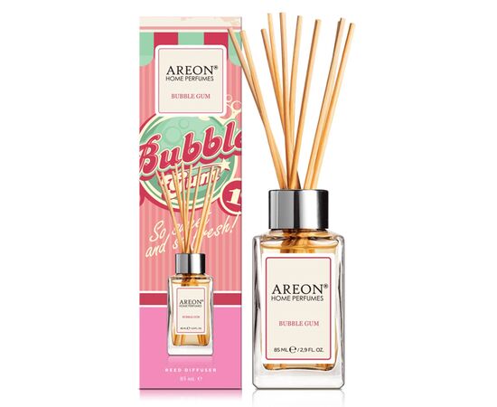 Ароматизатор воздуха Areon Home Perfume «Bubble Gum». Элегантный ароматизатор, который внесет аромат и комфорт в Вашем доме или общественном помещении. Вы можете сами выбирать силу аромата: чем больше палочек Вы поставите во флакон, тем более интенсивным будет аромат.