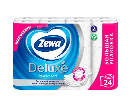 Туалетная бумага Zewa Deluxe в новой упаковке из 24 рулонов - запас, которого хватит надолго.