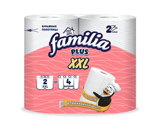 FAMILIA полотенца бумажные белые двухслойные 2 шт XXL