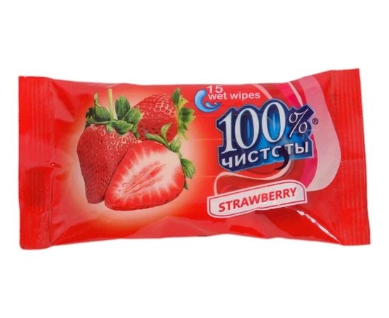 Салфетки влажные с аром. клубники 100% чистоты 15 шт.