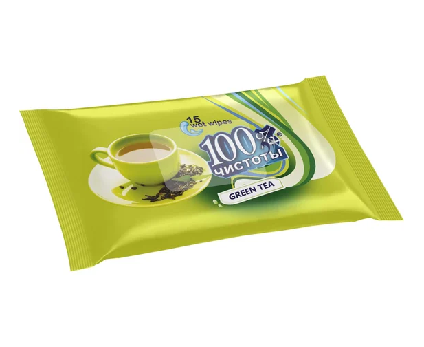 Салфетки влажные с аром. зеленого чая 100% чистоты 15 шт.