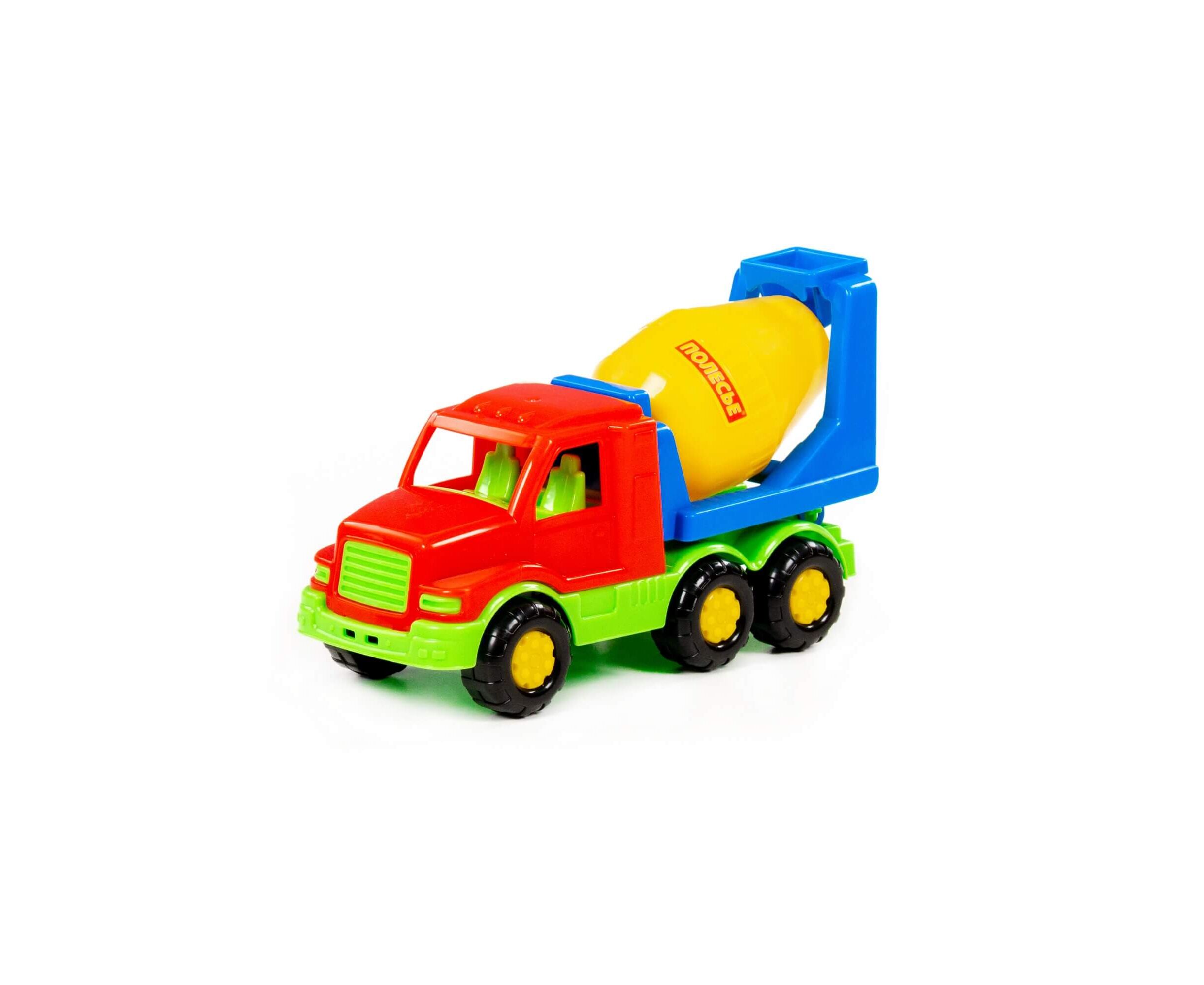 Автомобиль-бетоновоз "Максик" оснащён смесительным барабаном, имеет яркую расцветку и выполнен из качественного материала.