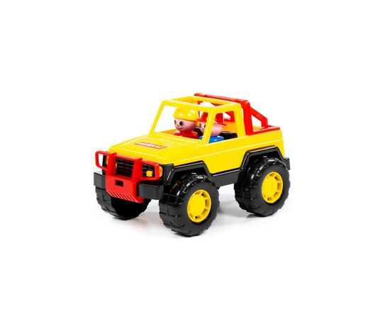 Автомобиль выполнен в стиле сафари и имеет современную окраску. В кабине джипа сидят два человечка, которые разнообразят игру и сделают её еще интереснее. Автомобиль джип "Сафари" может быть представлен в двух цветах: жёлтом и красном.