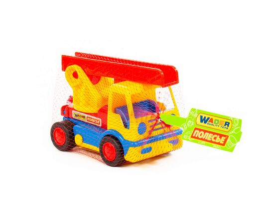 Он оснащён подъёмным краном. Круглая платформа, на которой установлен кран, поворачивается, что делает игрушку ещё интереснее.