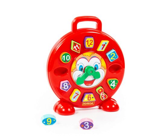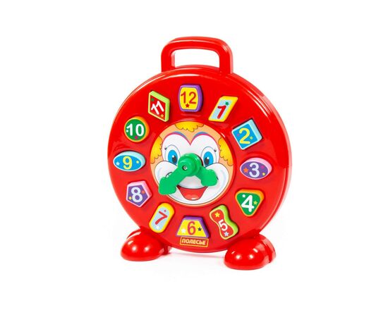 Часы «Клоун» от фабрики «Полесье» - развивающая игрушка для детей младшего дошкольного возраста. По окружности часов располагаются отверстия разных форм, в которые помещаются различные фигуры. Такая игра способствует развитию логического мышления. Стрелки часов можно передвигать, это позволяет игрушке показывать разное время. Сверху конструкции располагается удобная ручка, благодаря которой часы удобно перемещать даже ребёнку, а внизу располагаются две устойчивые ножки, которые позволяют ставить игрушку вертикально. Во время игры с часами малыш не только научится узнавать время по положению стрелок, но и познакомится с цветом, геометрическими фигурами, а также выучит цифры. Часы «Клоун» выполнены из качественных материалов и долго прослужат малышу.