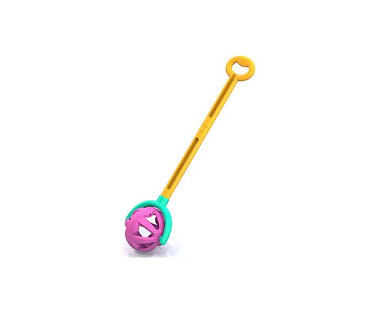 Каталка на палочке «Шарик» с удобной безопасной ручкой для ребенка и цветными шариками внутри для звукового эффекта.