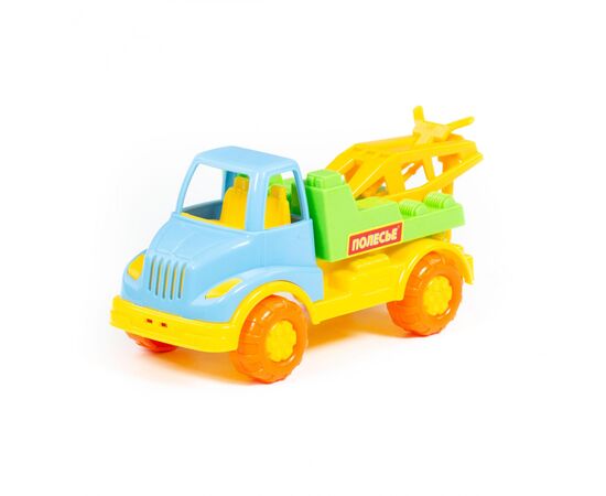 Компания "Полесье" представляет автомобиль-эвакуатор "Кнопик", который оснащён эвакуаторным краном, имеет яркую расцветку и выполнен из качественного материала.