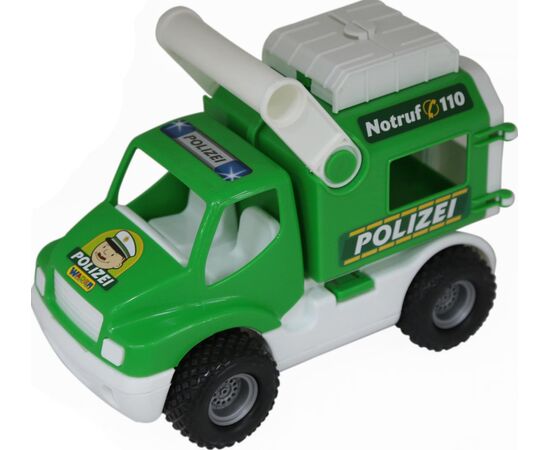 Маленький полицейский грузовичок очень удобно брать за ручку, которая закреплена на крыше, и катать дома или на улице.