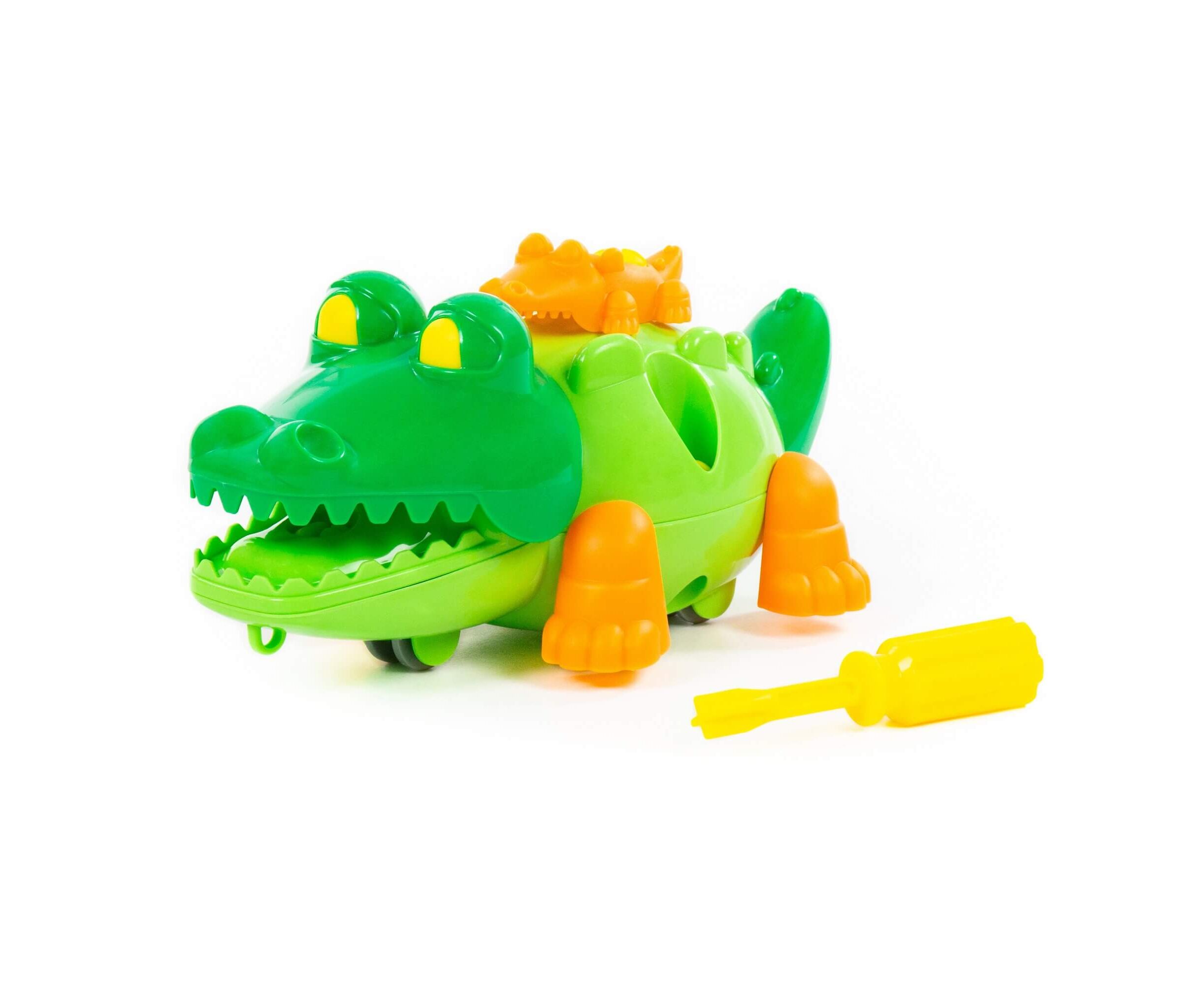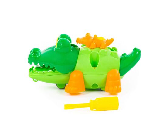 С помощью конструктора «Крокодил» ребёнок не просто знакомится с миром животных, а может многократно собирать и разбирать игрушку по деталям. Для этого в наборе предусмотрена специальная отвёртка. Игрушка на колёсах, поэтому ею можно играть как машинкой. Такой конструктор прекрасно подходит для воспитания малыша, так как ребёнок изучает цвета и формы; у него развиваются усидчивость, логическое мышление, мелкая моторика рук и координация движений.