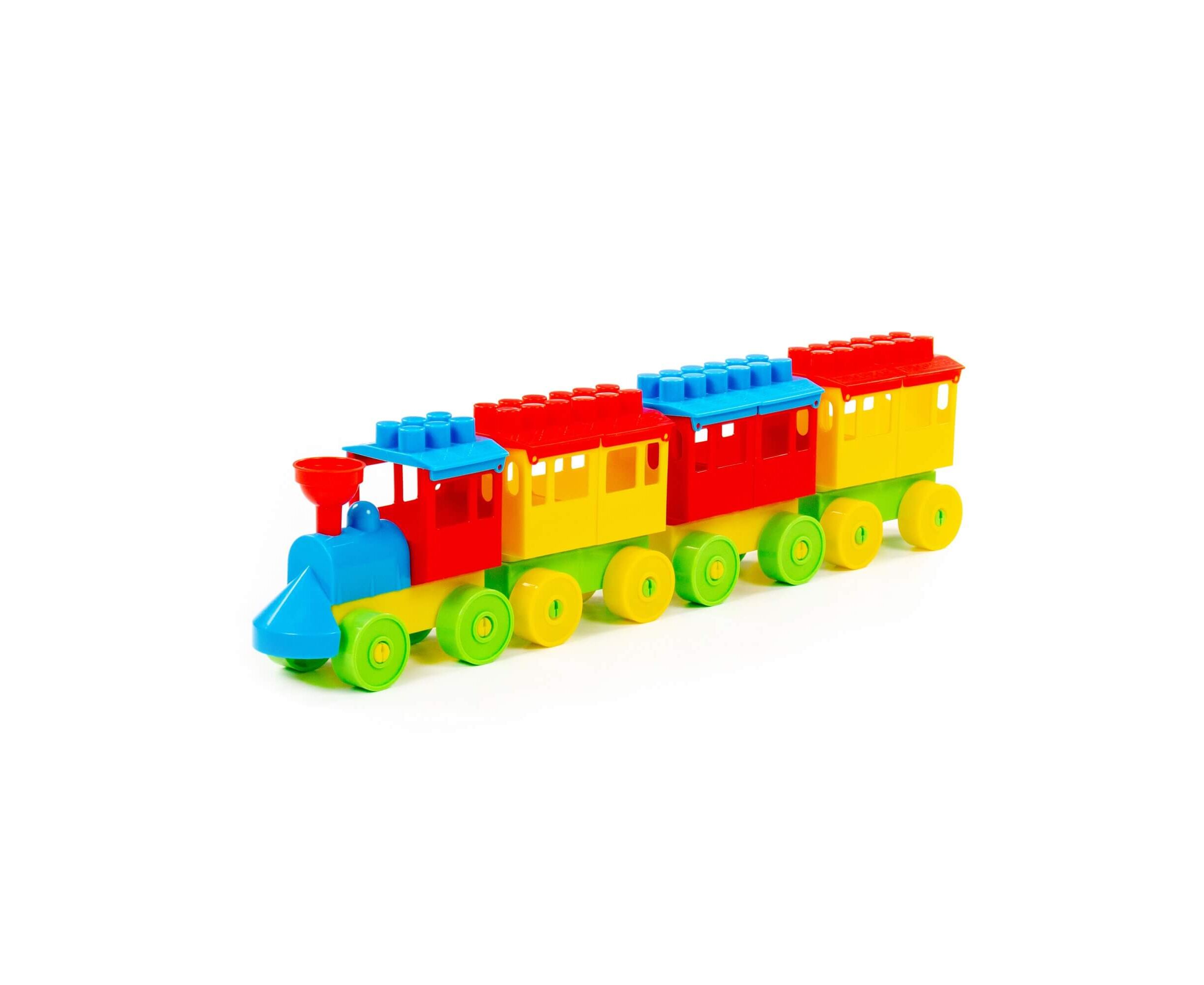 Конструктор-паровоз с тремя вагонами дополняет огромную коллекцию конструкторов фабрики «Полесье».