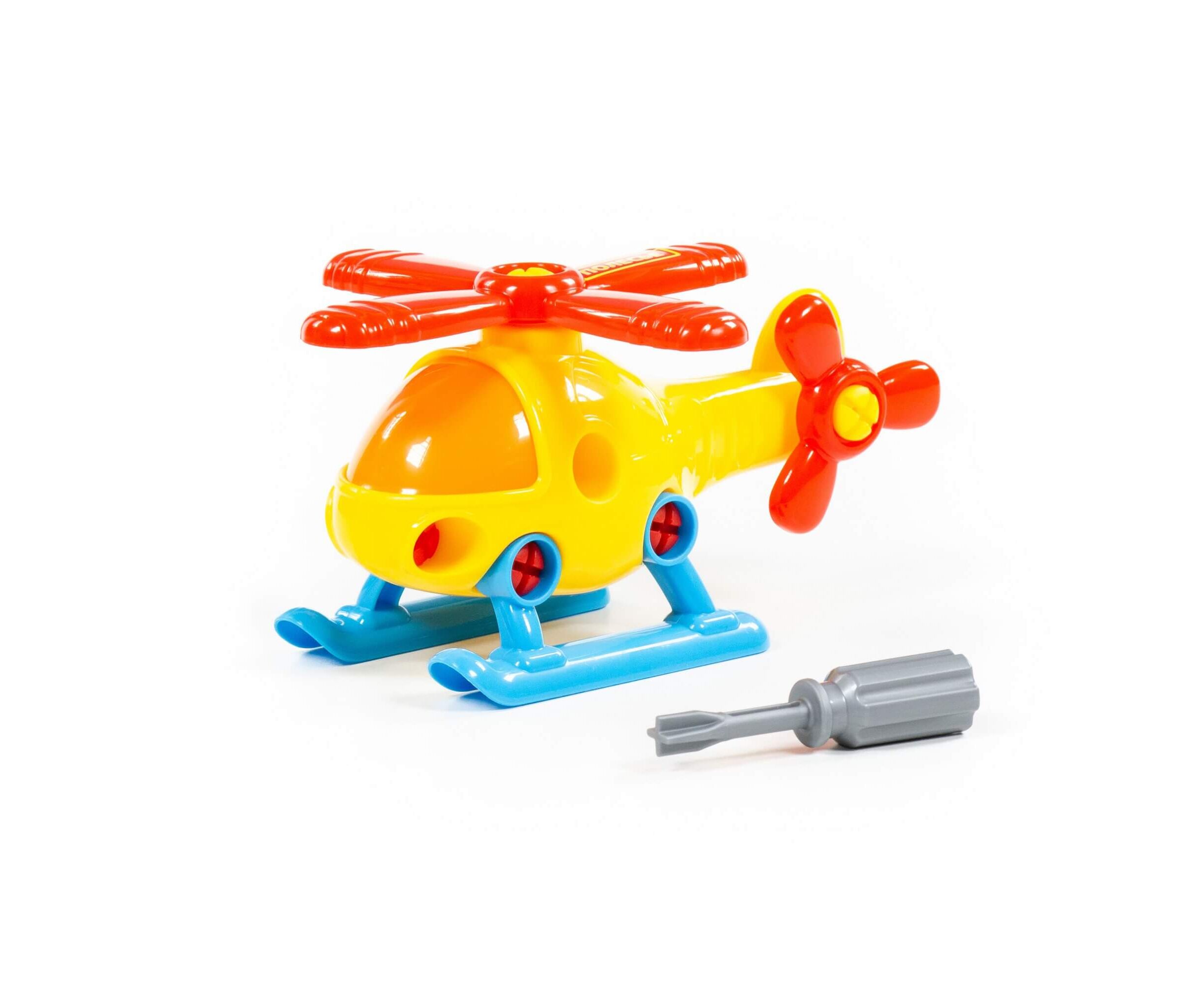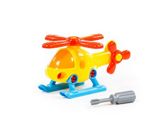 Все элементы вертолёта представлены в виде конструктора, который соединяется с помощью пластмассовых шурупов. В наборе также идёт крестообразная отвёртка, которая разнообразит игру, сделает её еще интереснее, позволяя без труда разбирать и собирать вертолёт.